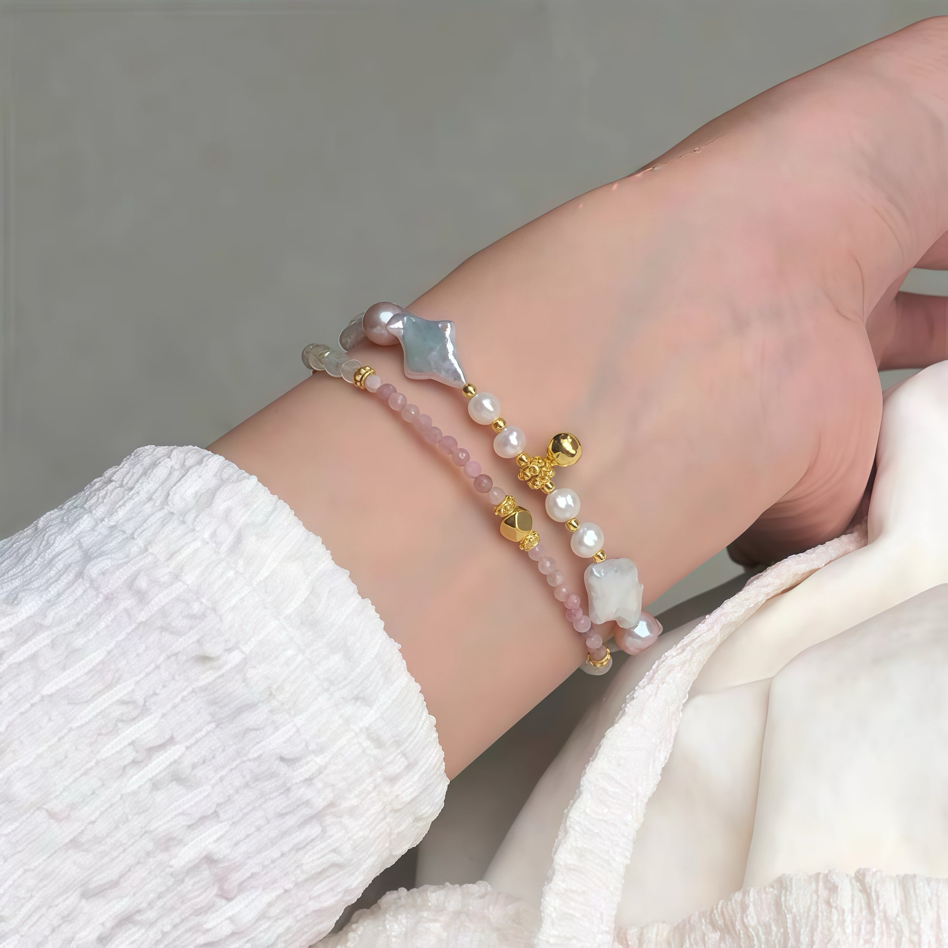 A modern ode to natural beauty — the Dual Layer Irregular Pearl Bracelet captures the allure of imperfection through its organically shaped freshwater pearls.