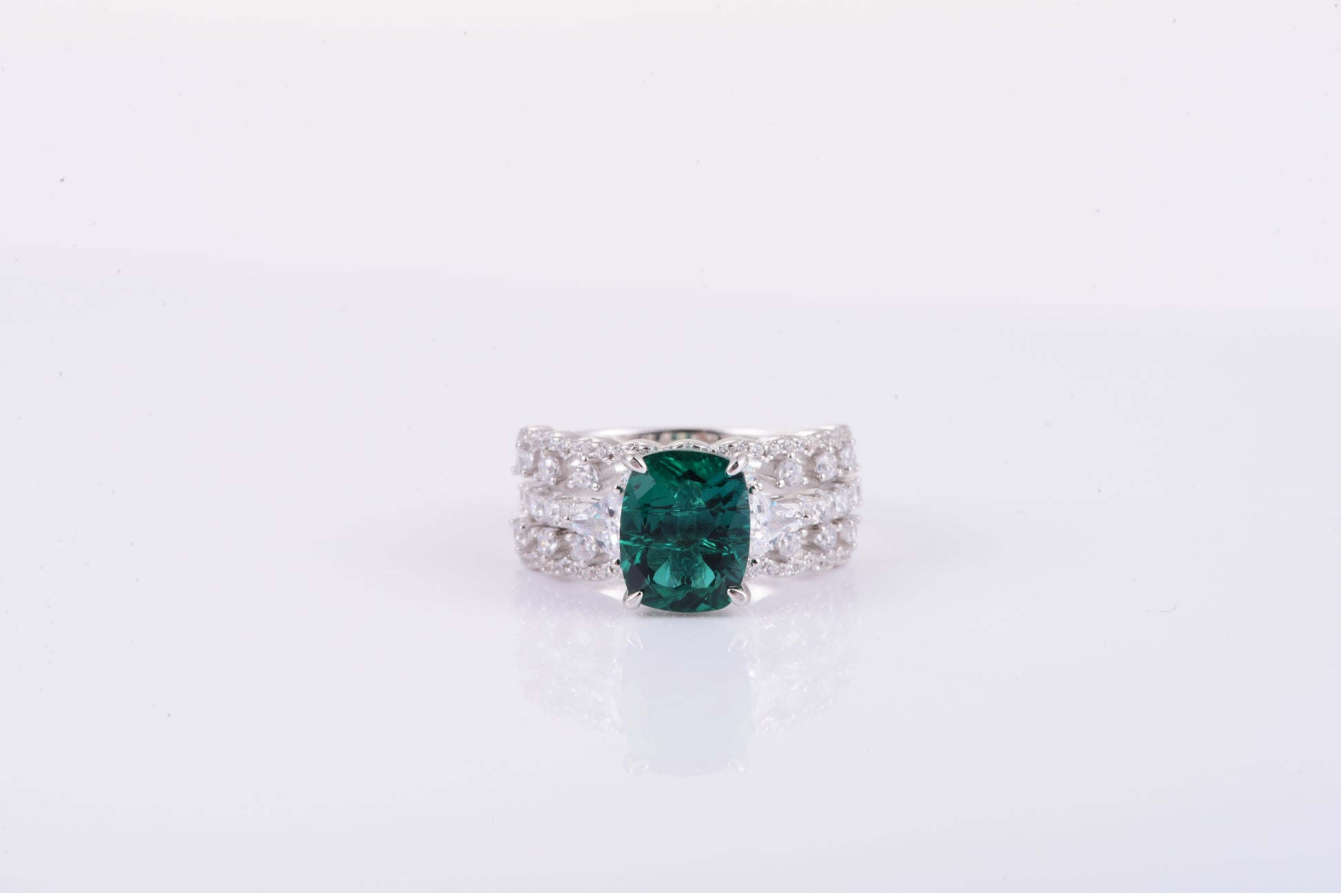 A timeless ring featuring a vivid lab-created emerald set in genuine 925 sterling silver. Elegant, refined, and full of natural charm — perfect for both daily wear and special occasions.