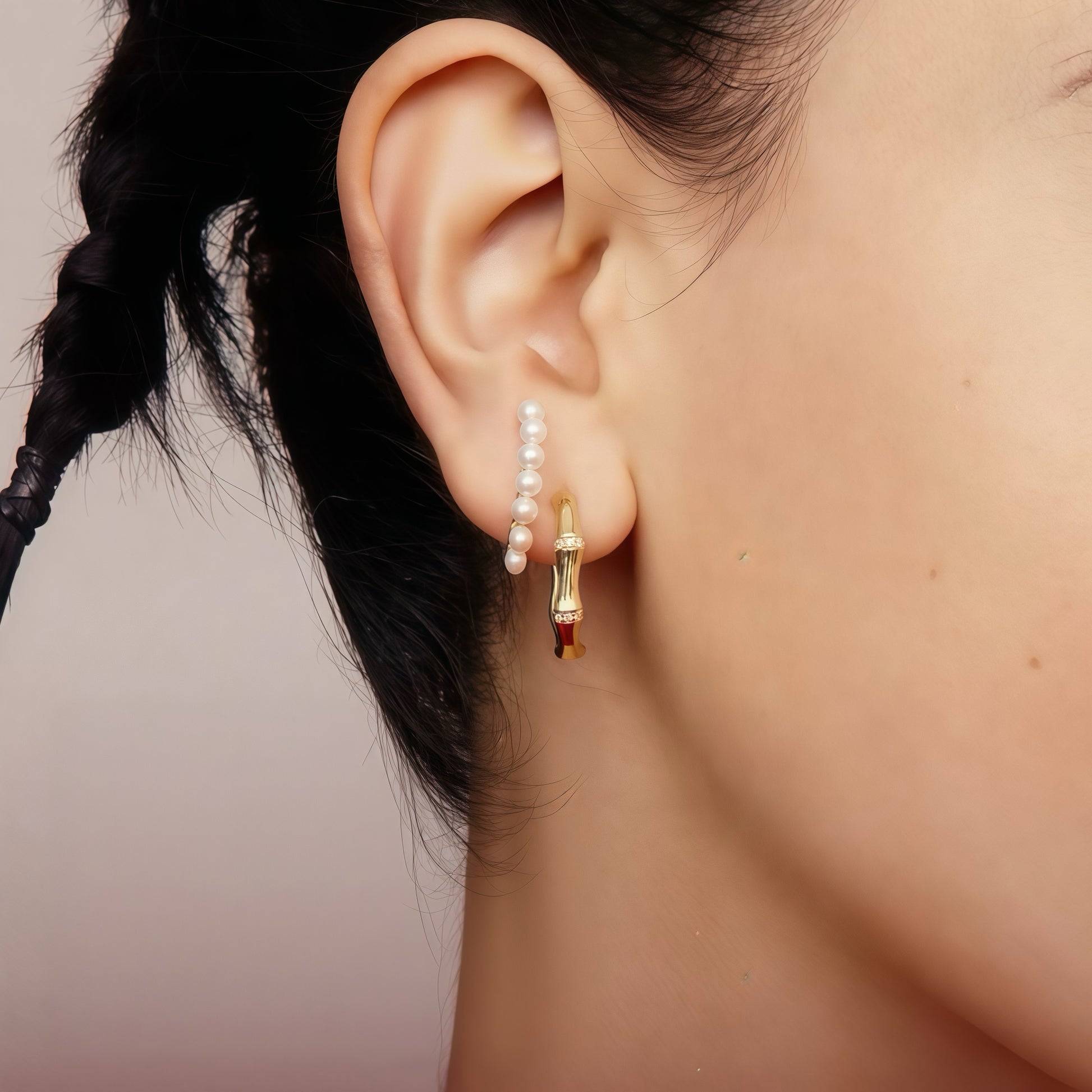 Inspired by the quiet grace of bamboo and the natural beauty of freshwater pearls, these earrings embody balance and refinement. Each pearl rests gently。